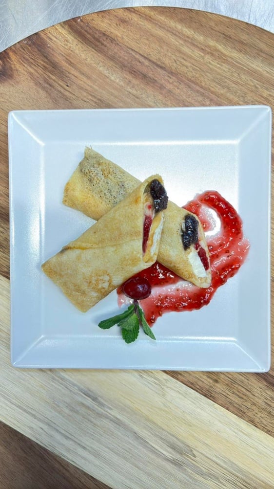 Млинці тріо насолода (творожне суфле,мак, вишня) 2 шт